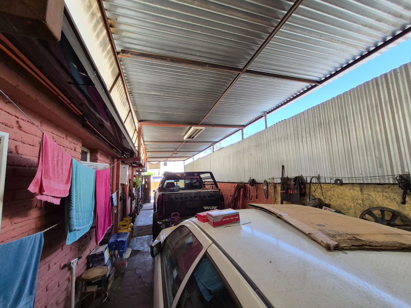 La propiedad destaca por sus ampliaciones regularizadas, su piso completamente revestido en cerámica, y un amplio techo lateral en el patio, espacio actualmente utilizado como taller mecánico, lo que entrega gran versatilidad para uso comercial, emprendimiento o ampliación futura.
